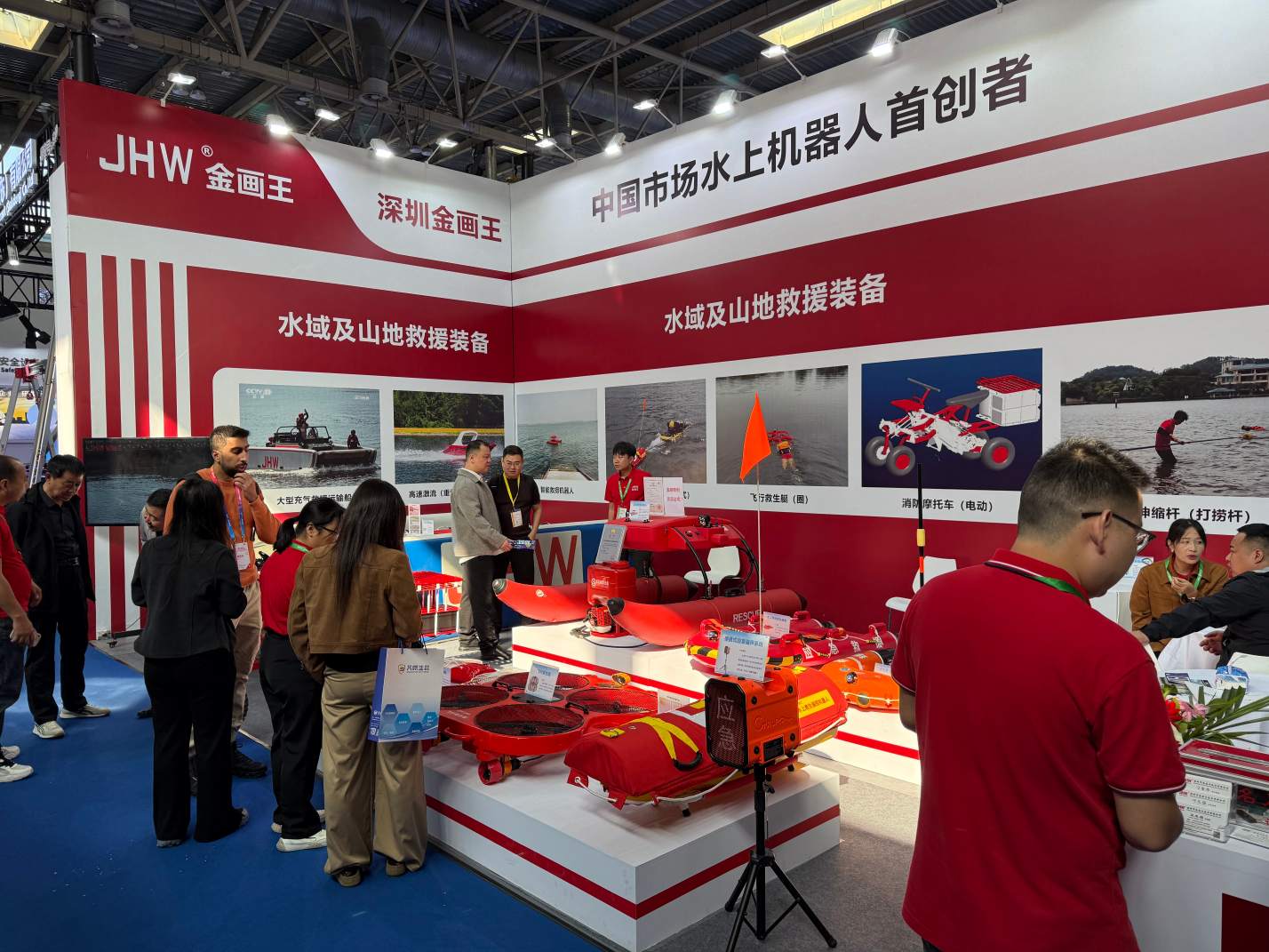 第二十一届中国国际消防展(北京)已圆满落幕。本届展会,我们重点展示和推介了近两年来的创新新品:四轮电动摩托车、飞行救生圈、飞行救生艇、智能救捞机器人。新品亮相,秉持和发扬了金画王产品一贯坚持的“高创新、高品质、高颜值”风格,得到了来自全国各地经销商和用户朋友的关注和认可,获得了展会主办方中国消防协会的“创新产品奖”肯定,也与众多海外客户达成了合作意向。未来已来,期待与大家精诚合作,共谋发展,一起为救援装备智能化做出贡献!